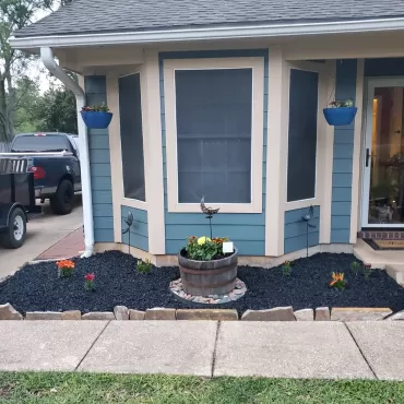 The rubber mulch and dura timber borders were perfect for this project. Everyone who has seen it loves the look and quality of the borders.